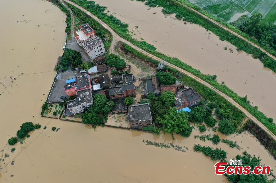 Aerial photo taken by drones shows the flooded Shangxi village in Guangzhou, south China's Guangdong Province, May 11, 2022. (Photo: China News Service/Chen Wenmin)