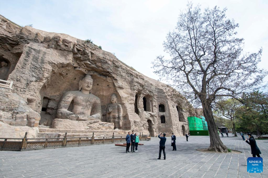People visit the Yungang Grottoes in Datong, north China's Shanxi Province, May 11, 2022.