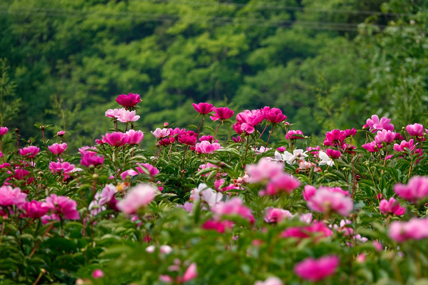 Photo shows peonies in the Huangyangguan Tibetan township of Mianyang city, southwest China’s Sichuan Province. (Photo/Hu Yu)