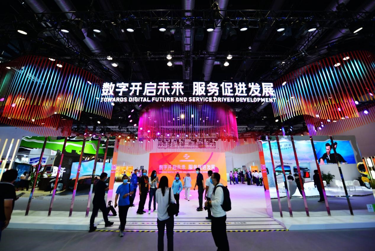 Photo taken on Sept. 7, 2021 shows the exhibition area of the 2021 China International Fair for Trade in Services (CIFTIS) at the China National Convention Center in Beijing. (Photo by Fan Jiashan/People’s Daily Online)