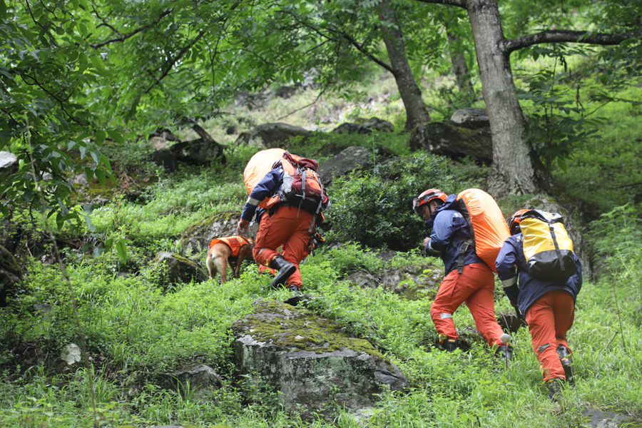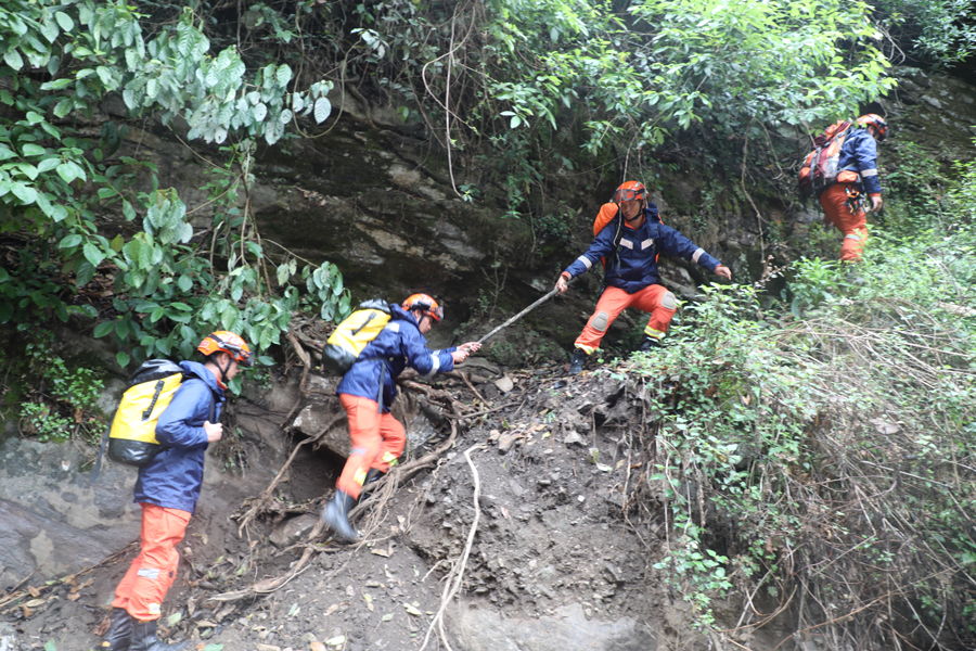 Rescuers search for missing people on Cangshan Mountain in Dali in southwest China's Yunnan Province, May 14, 2022. /CMG