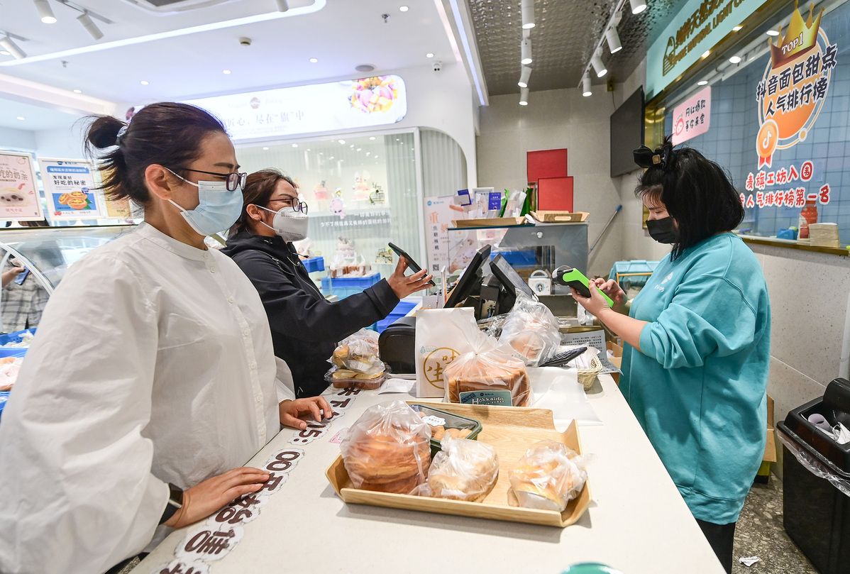 Residents shop at a bakery store in Xuhui district of Shanghai, on May 10, 2022. [Photo/Xinhua]