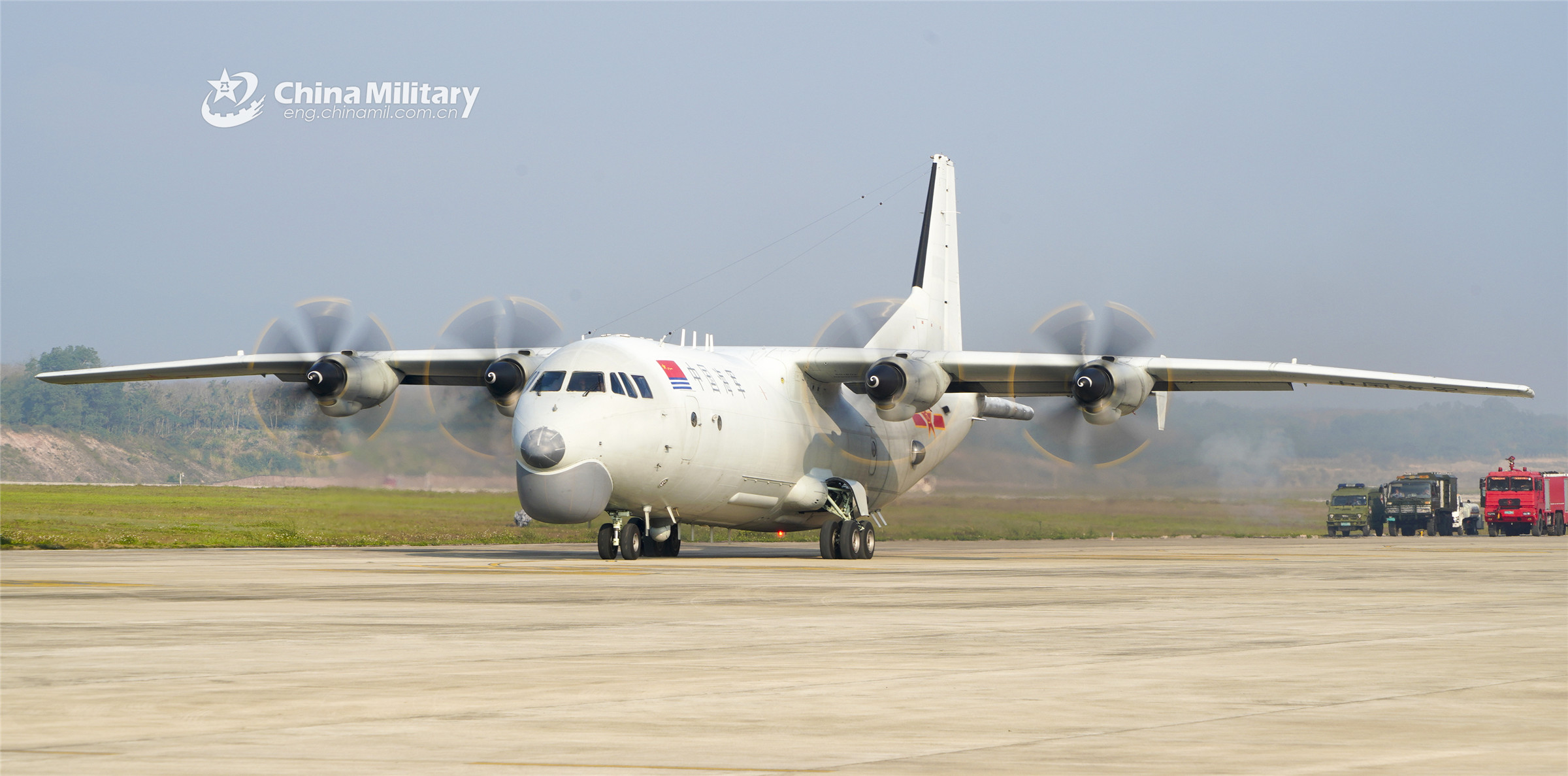 An anti-submarine patrol aircraft attached to a naval aviation regiment under the PLA Southern Theater Command taxis toward the take-off position before a maritime patrol and anti-submarine training exercise on February 16, 2022. (eng.chinamil.com.cn/Photo by Qin Qianjiang)