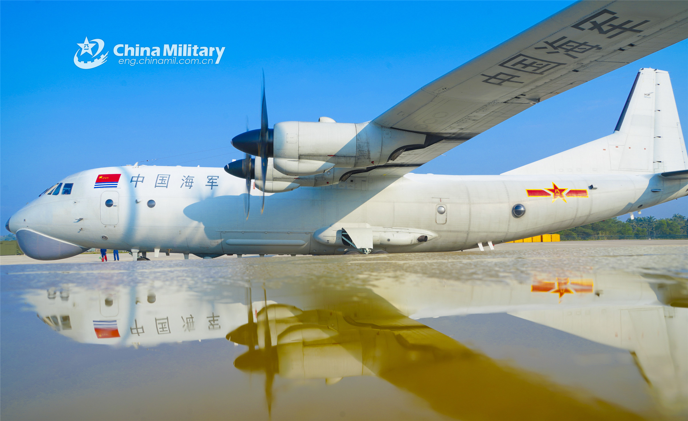 An anti-submarine patrol aircraft attached to a naval aviation regiment under the PLA Southern Theater Command soars into sky during a maritime patrol and anti-submarine training exercise on February 16, 2022. (eng.chinamil.com.cn/Photo by Qin Qianjiang)