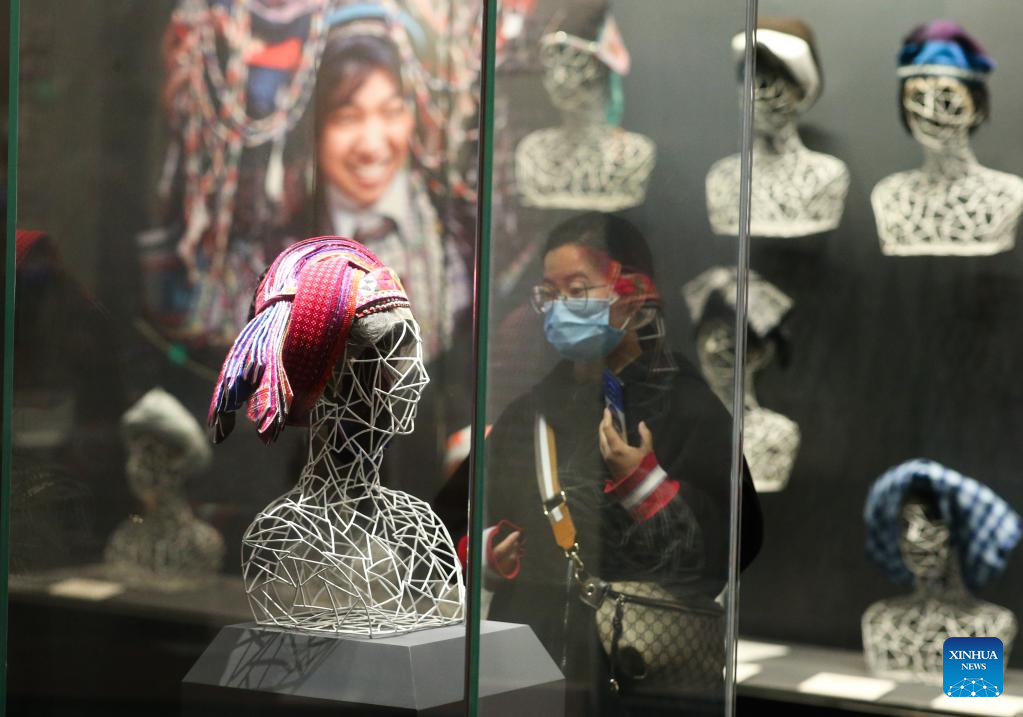 (220517) -- GUIYANG, May 17, 2022 (Xinhua) -- A visitor looks at an exhibit at Guizhou Provincial Museum in Guiyang, southwest China's Guizhou Province, May 17, 2022. The International Museum Day, which falls on May 18, is being celebrated with a variety of online and offline activities across China. (Photo by Zhang Hui/Xinhua)