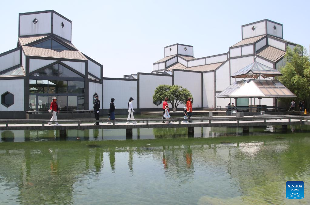 (220517) -- SUZHOU, May 17, 2022 (Xinhua) -- People visit Suzhou Museum in Suzhou, east China's Jiangsu Province, May 17, 2022. The International Museum Day, which falls on May 18, is being celebrated with a variety of online and offline activities across China. (Photo by Wang Jiankang/Xinhua)