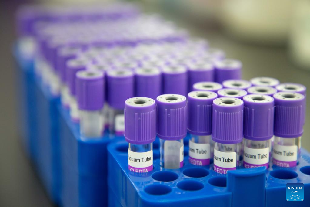 Photo taken on May 4, 2022 shows samples for COVID-19 tests in the inflatable COVID-19 testing lab Huo-Yan Air Lab at the Addis Ababa Bole International Airport, Ethiopia. BGI Health Ethiopia, a subsidiary of China's biotech giant, the BGI Genomics Co., Ltd., has won acclaim for its technology and knowledge transfer endeavors to propel Ethiopia's fight against the COVID-19 pandemic. (Xinhua/Michael Tewelde)