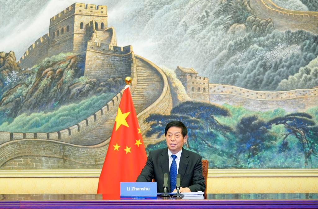 BEIJING, May 17 (Xinhua) -- Li Zhanshu, chairman of the National People's Congress (NPC) Standing Committee, met with Rustam Emomali, chairman of the National Assembly of Tajikistan via video link on Tuesday.