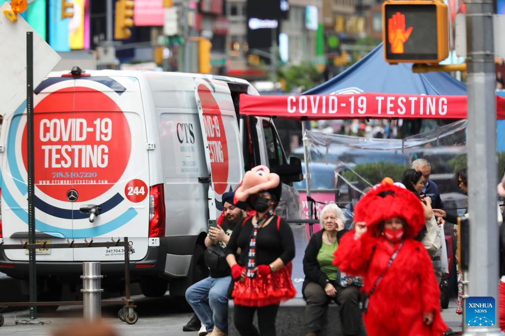 A COVID-19 testing site is seen on Times Square in New York, the United States, May 17, 2022. (Xinhua/Wang Ying)