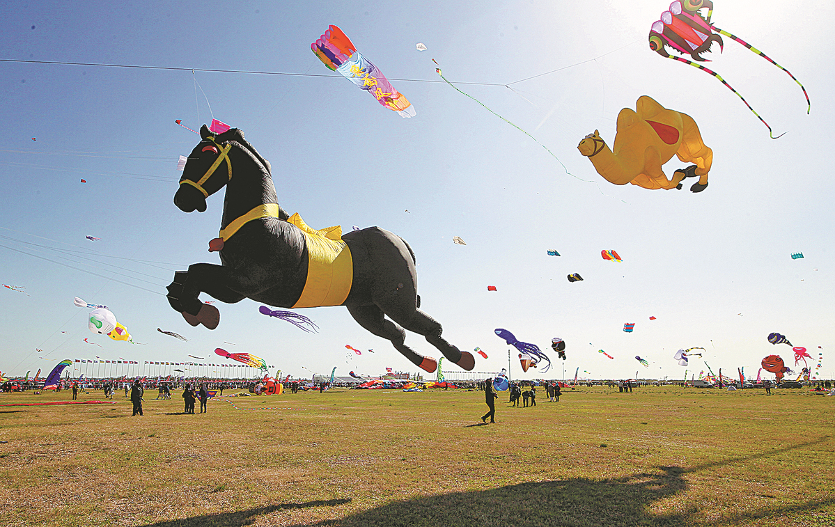 People from across China fly kites at the 38th Weifang International Kite Festival in April 2021. SUN SHUBAO/XINHUA