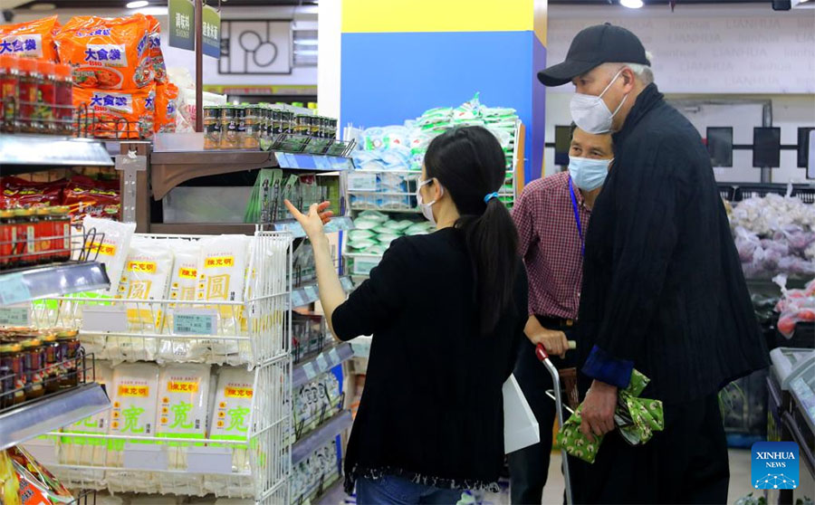 Citizens shop at a supermarket in Jing'an District of Shanghai, east China, May 17, 2022.(Xinhua/Fang Zhe)