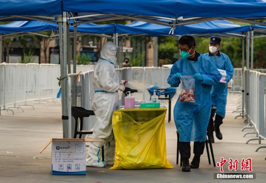 Staff collect samples at a testing site, Chaoyang district, Beijing, May 18, 2022. (Photo: China News Service/Hou Yu)