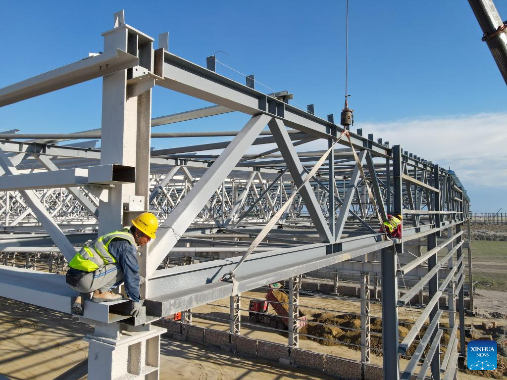 Workers work at a construction site in Tacheng, northwest China's Xinjiang Uygur Autonomous Region, May 18, 2022. Construction workers are busy building major infrastructure projects in the key pilot zone of Tacheng, northwest China's Xinjiang Uygur Autonomous Region. (Xinhua/Gao Han)