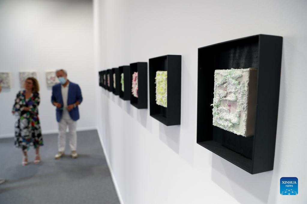 A piece of artwork is displayed at the ARCOlisboa international contemporary art fair in Lisbon, Portugal, on May 19, 2022. The ARCOlisboa 2022 which kicked off on Thursday, will last till May 22. (Photo by Pedro Fiuza/Xinhua)