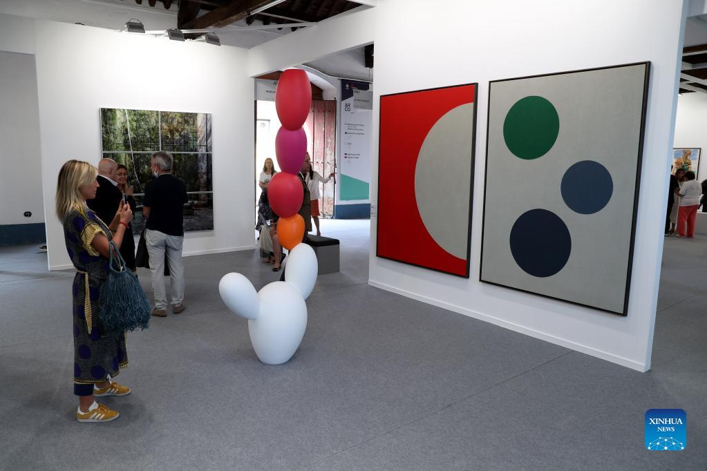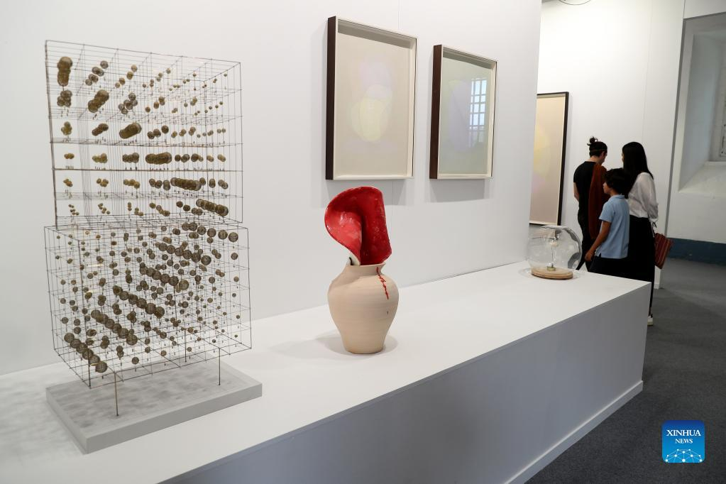 People visit the ARCOlisboa international contemporary art fair in Lisbon, Portugal, on May 19, 2022. The ARCOlisboa 2022 which kicked off on Thursday, will last till May 22. (Photo by Pedro Fiuza/Xinhua)