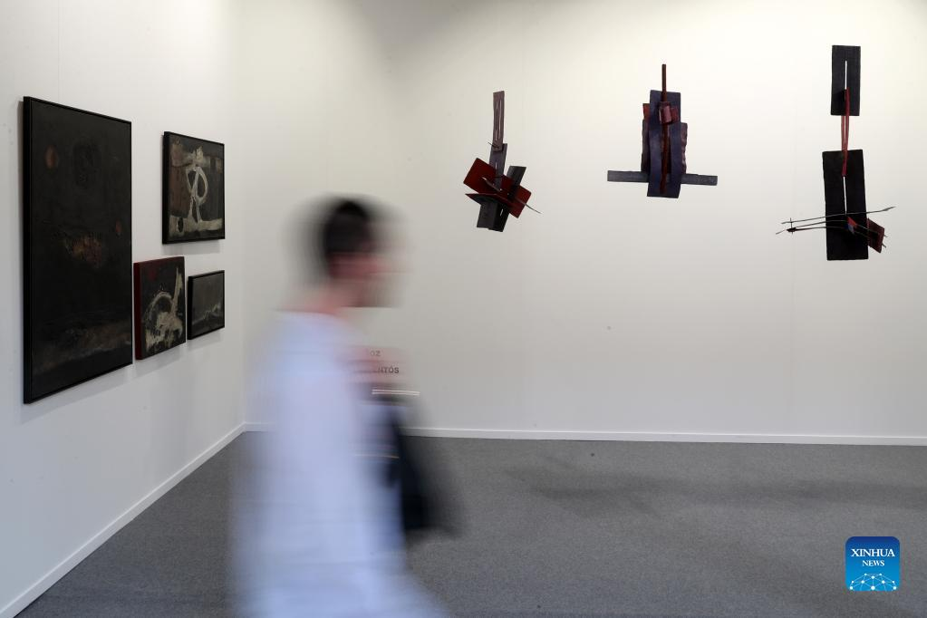 A visitor walks past exhibits at the ARCOlisboa international contemporary art fair in Lisbon, Portugal, on May 19, 2022. The ARCOlisboa 2022 which kicked off on Thursday, will last till May 22. (Photo by Pedro Fiuza/Xinhua)