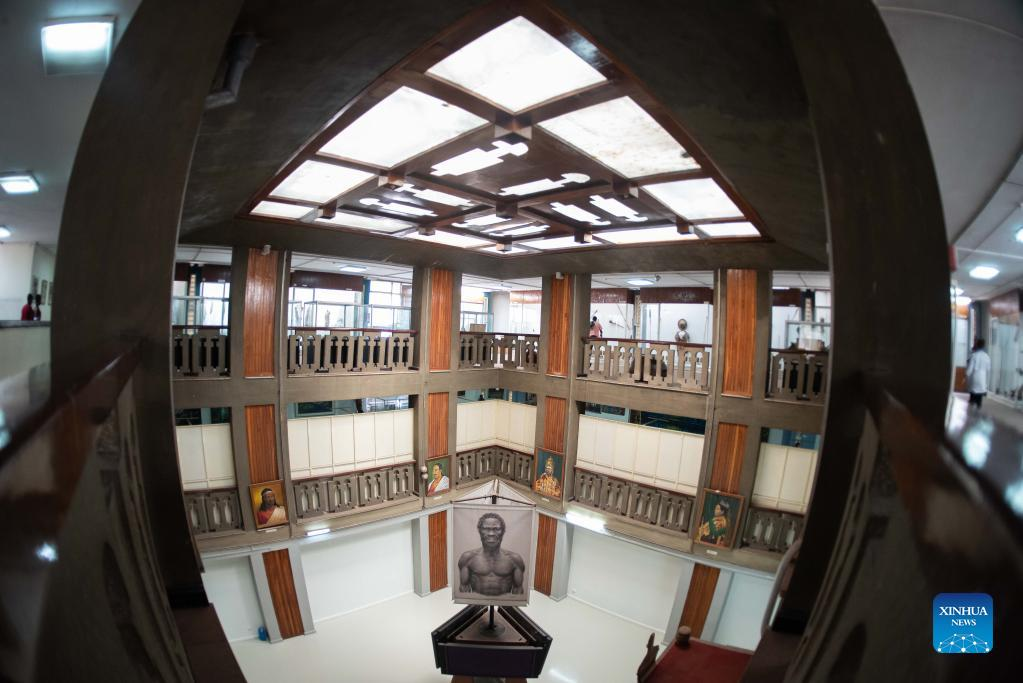 Photo taken on May 18, 2022 shows the Interior of National Museum of Ethiopia in Addis Ababa, Ethiopia. The museum houses collections of precious heritages, including fossilized bones of a female of the hominin species Australopithecus afarensis, named "Lucy", which is believed to live about 3.2 million years ago. (Xinhua/Michael Tewelde)