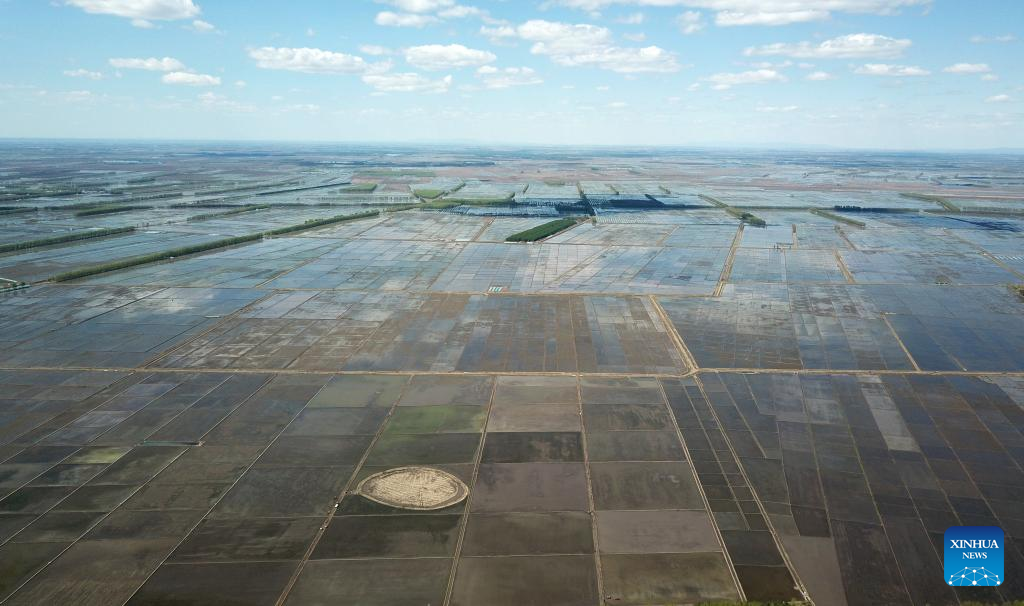 Aerial photos taken on May 18, 2022 shows paddy fields in northeast China's Heilongjiang Province. Spring farming activities are in full swing across Heilongjiang Province. By May 17, the province's spring sowing area of crops has reached 190 million mu (about 12.67 million hectares). (Xinhua/Wang Jianwei)