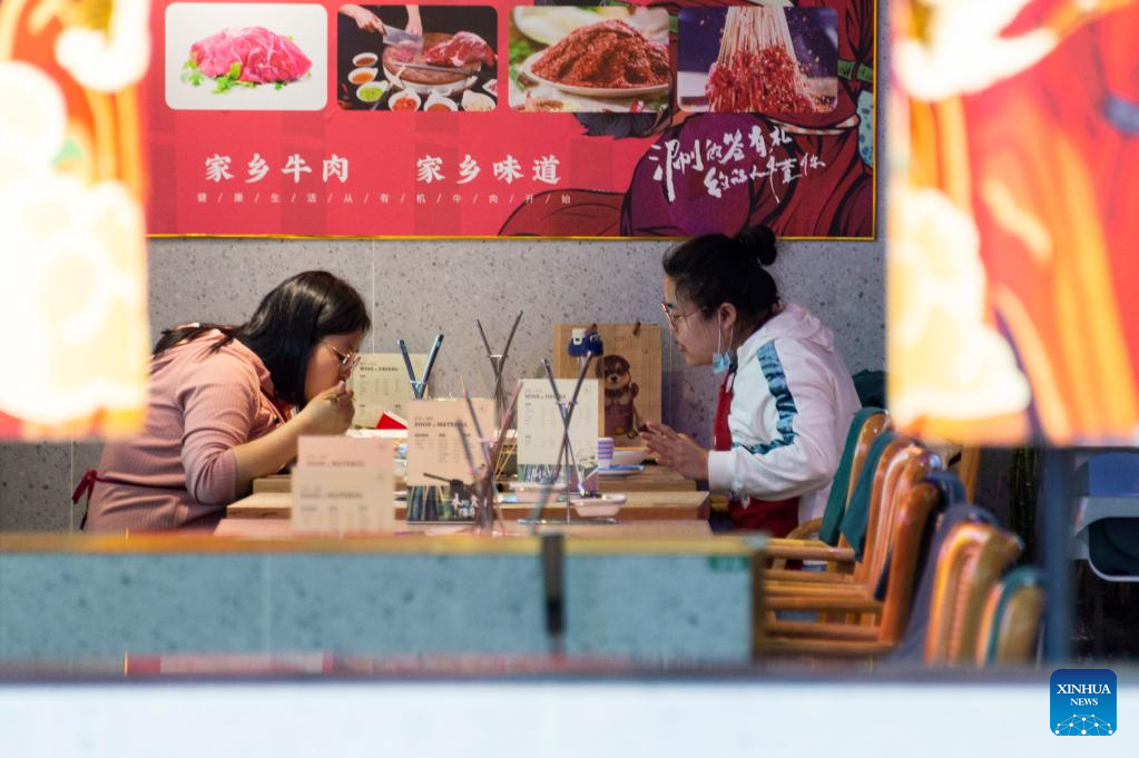 People have meals in a shopping mall in Xiangfang District of Harbin, northeast China's Heilongjiang Province, May 19, 2022. Normal life in Harbin has gradually resumed as the latest COVID-19 resurgence waned. (Xinhua/Xie Jianfei)