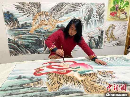 In 2022, the Year of the Tiger, the tiger painting business in the village prospered even further. “In October 2021, we received an order for 800 tiger paintings placed by customers from Jilin Province,” said Wang Jianfeng, secretary of the Party branch of the village, adding that nearly all of the paintings ordered by the clients have been finished as of now.