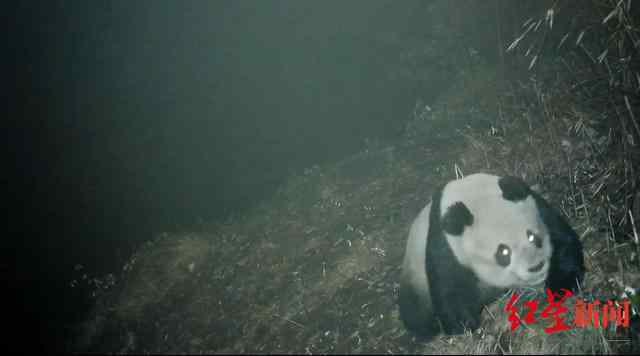Photo taken by an infrared camera shows a wild giant panda in southwest China’s Sichuan Province. (Photo courtesy of Deyang Bureau of the Giant Panda National Park)