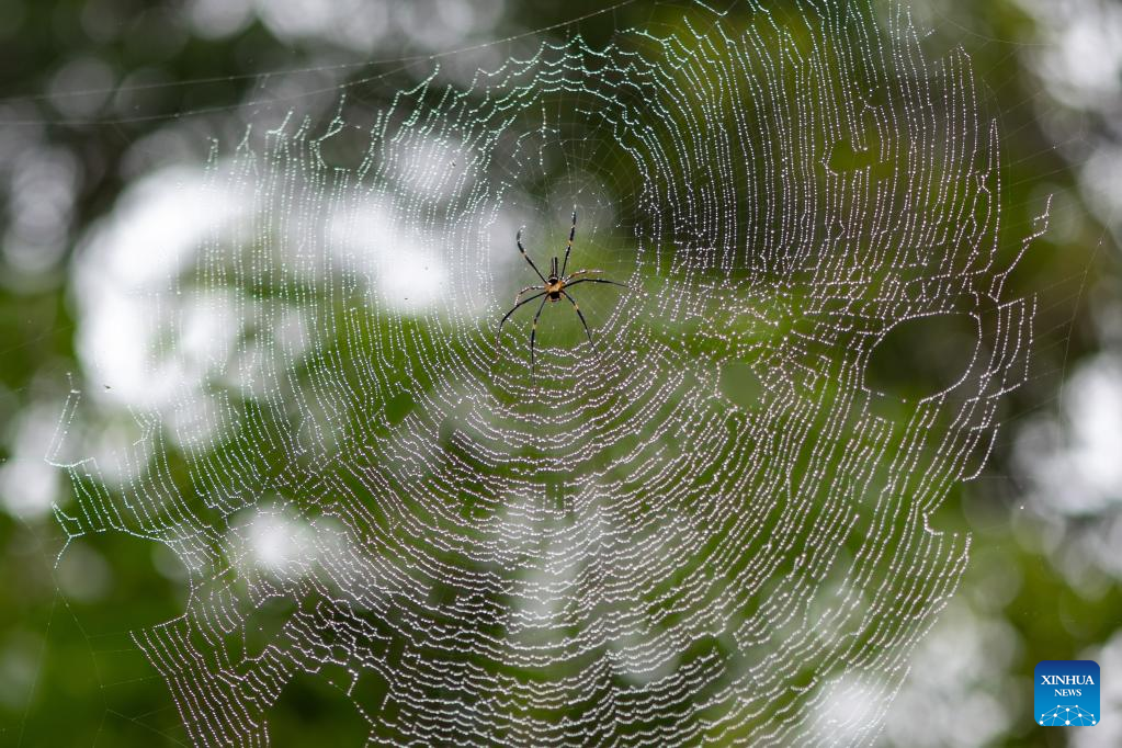 A spider is seen in the Wuzhishan section of the Hainan Tropical Rainforest National Park in south China's Hainan Province, May 17, 2022. Wuzhishan section is a core part of the Hainan Tropical Rainforest National Park. The national park, covering 4,269 square km, is home to the most concentrated and well-preserved tropical rainforests in China. (Xinhua/Hu Zhixuan)