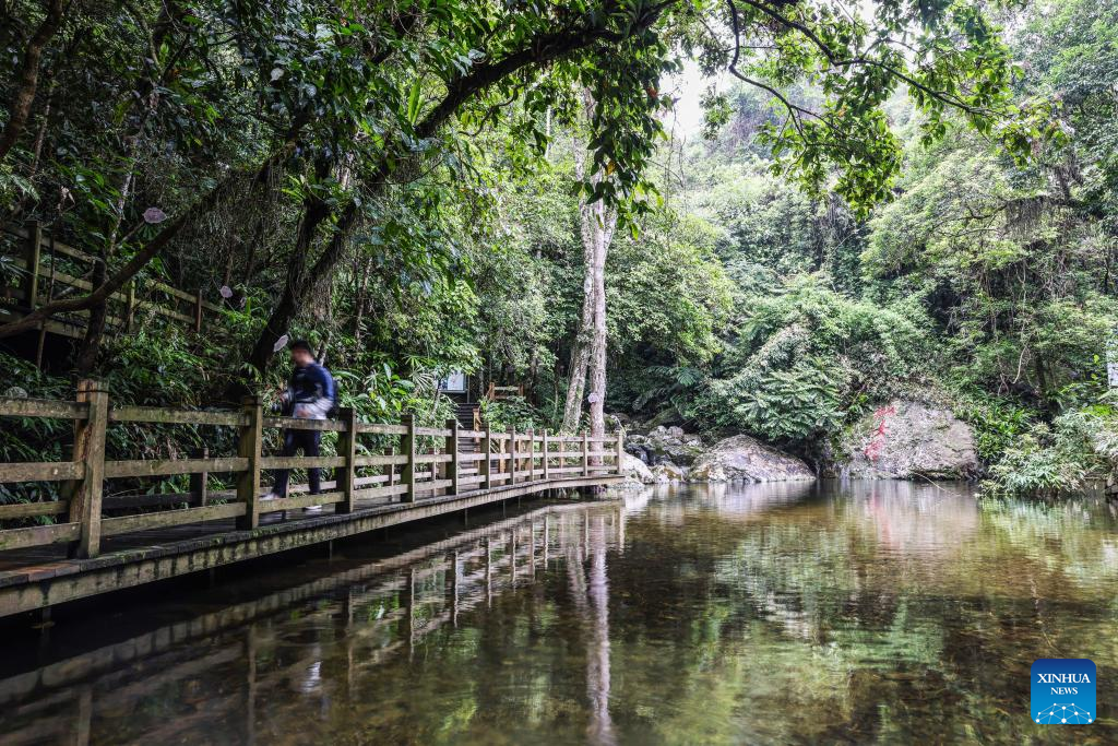 Tourists visit the Wuzhishan section of the Hainan Tropical Rainforest National Park in south China's Hainan Province, May 17, 2022. Wuzhishan section is a core part of the Hainan Tropical Rainforest National Park. The national park, covering 4,269 square km, is home to the most concentrated and well-preserved tropical rainforests in China. (Xinhua/Zhang Liyun)
