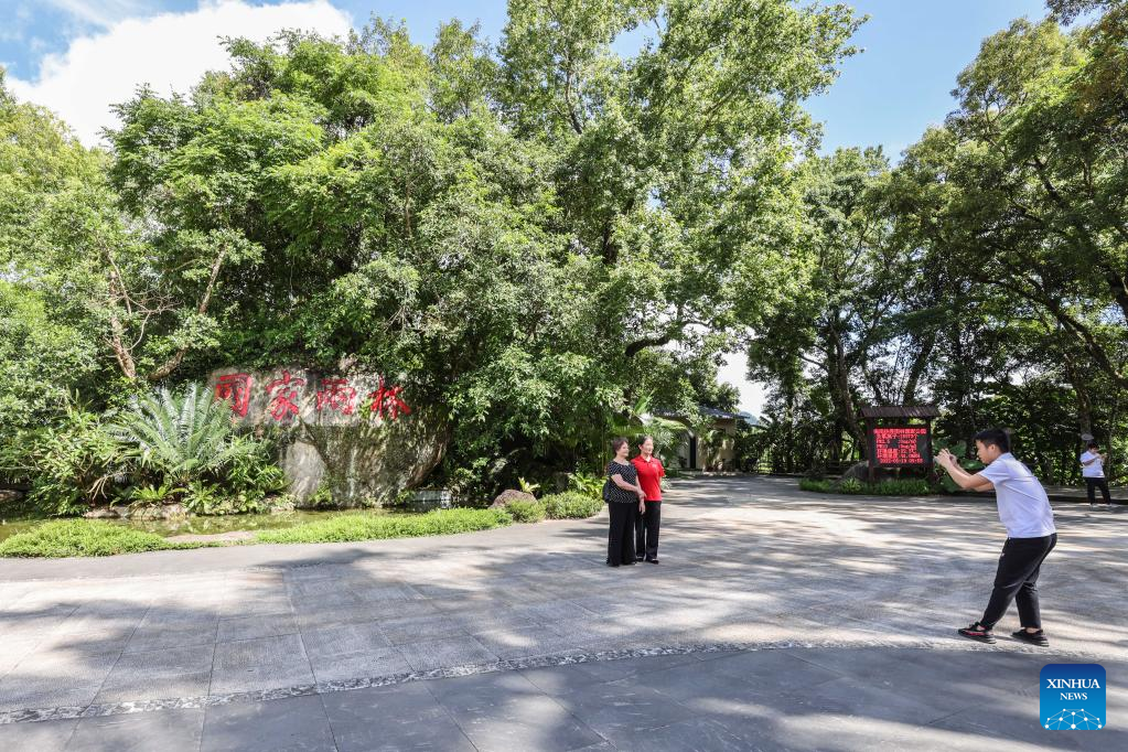 Tourists visit the Wuzhishan section of the Hainan Tropical Rainforest National Park in south China's Hainan Province, May 19, 2022. Wuzhishan section is a core part of the Hainan Tropical Rainforest National Park. The national park, covering 4,269 square km, is home to the most concentrated and well-preserved tropical rainforests in China. (Xinhua/Zhang Liyun)