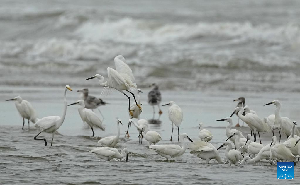 (220522) -- FUZHOU, May 22, 2022 (Xinhua) -- Birds rest in the Minjiang River estuary nature reserve in southeast China's Fujian Province, May 21, 2022. Located on a major bird migration route between East Asia and Australia, the Minjiang River estuary nature reserve is a stopover for over 50,000 waterfowls each year. (Xinhua/Wei Peiquan)