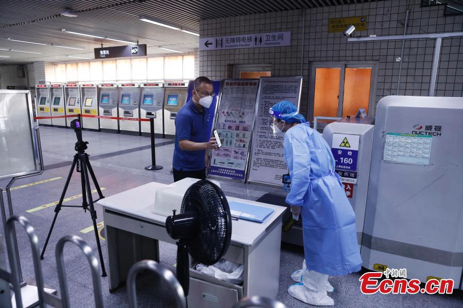 A passenger shows his health code before entering a metro station in east China's Shanghai, May 22, 2022. (Photo: China News Service/Yin Liqin)