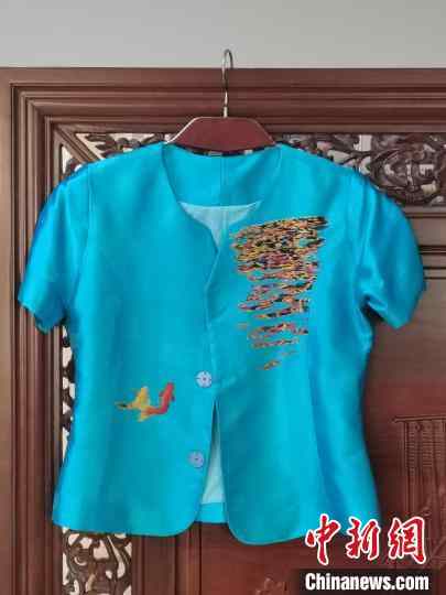 Photo shows a dress with short sleeves produced by Zhong Ming’s workshop in Chengdu, capital city of southwest China’s Sichuan Province. (Chinanews.com/Wang Liwen)
