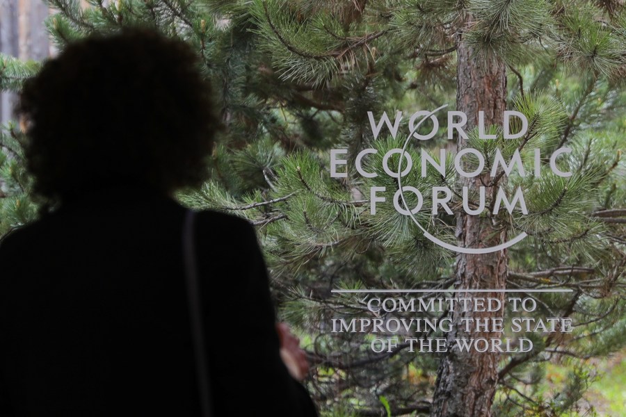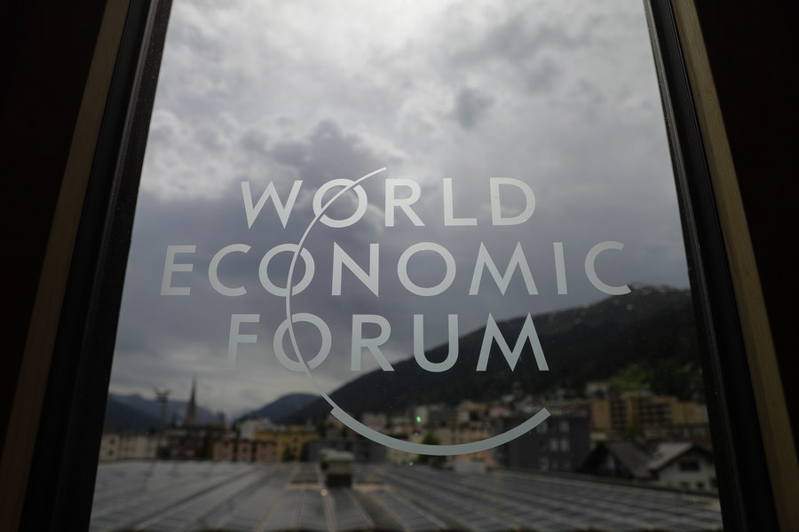 The sign of the World Economic Forum (WEF) is seen in Davos, Switzerland, May 22, 2022. The WEF 2022 Annual Meeting is held here from May 22 to 26. (Xinhua/Zheng Huansong)