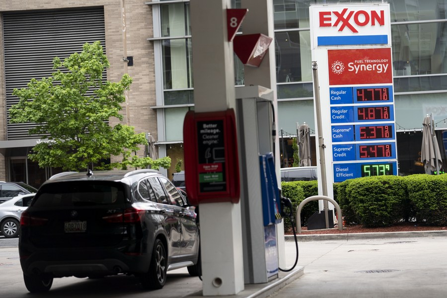Gas prices are displayed at a gas station in Washington, DC, on May 11, 2022. [Photo/Xinhua]