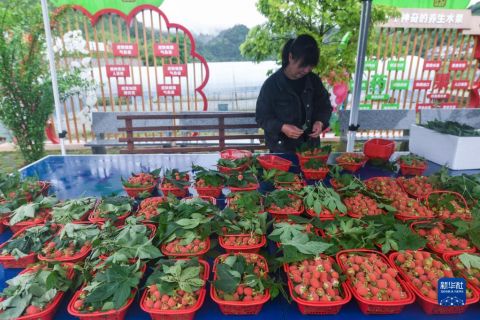 Photo shows raspberries on sale at a village in Linqi township, Chun’an county, Hangzhou. (Photo/Xinhua)