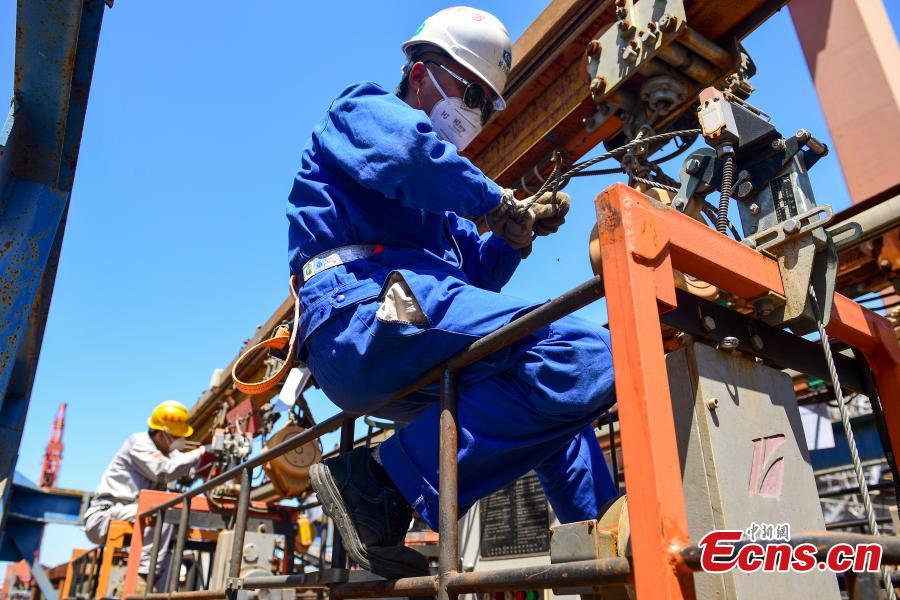 A staff member of Hudong-Zhonghua Shipbuilding works at a shipyard in Shanghai, May 23, 2022. (Photo: China News Service/Tian Yuhao)