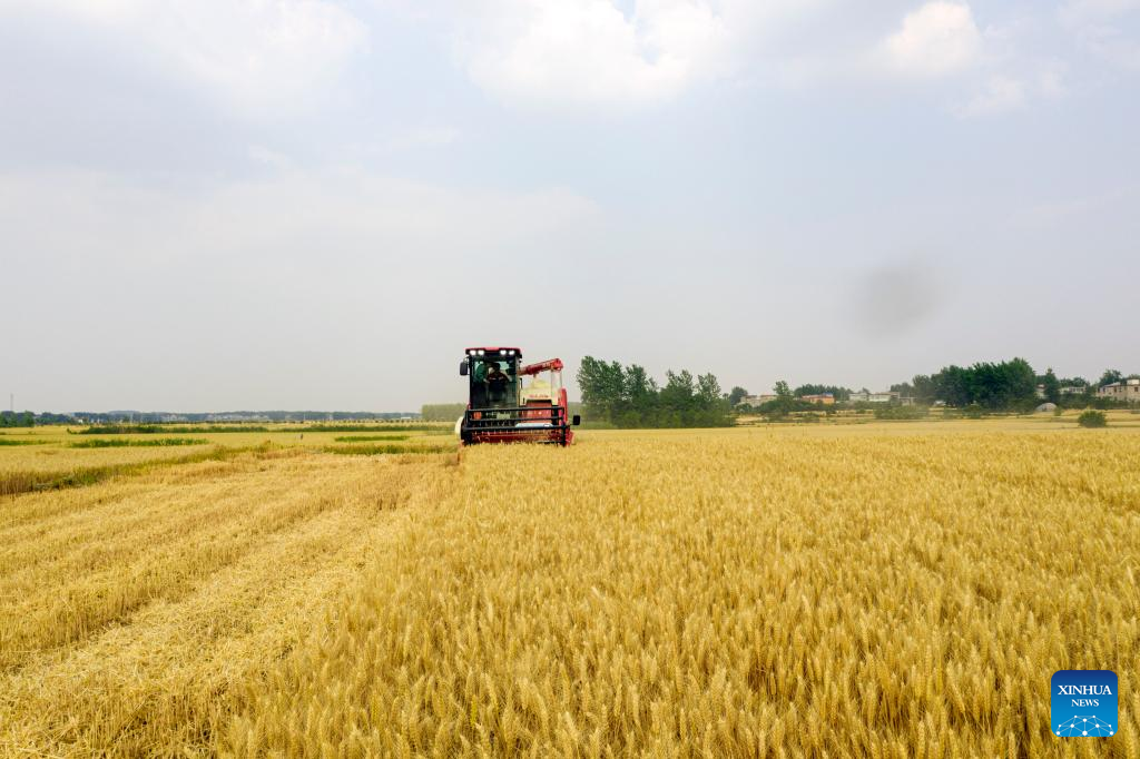 Farmers harvest wheat across China