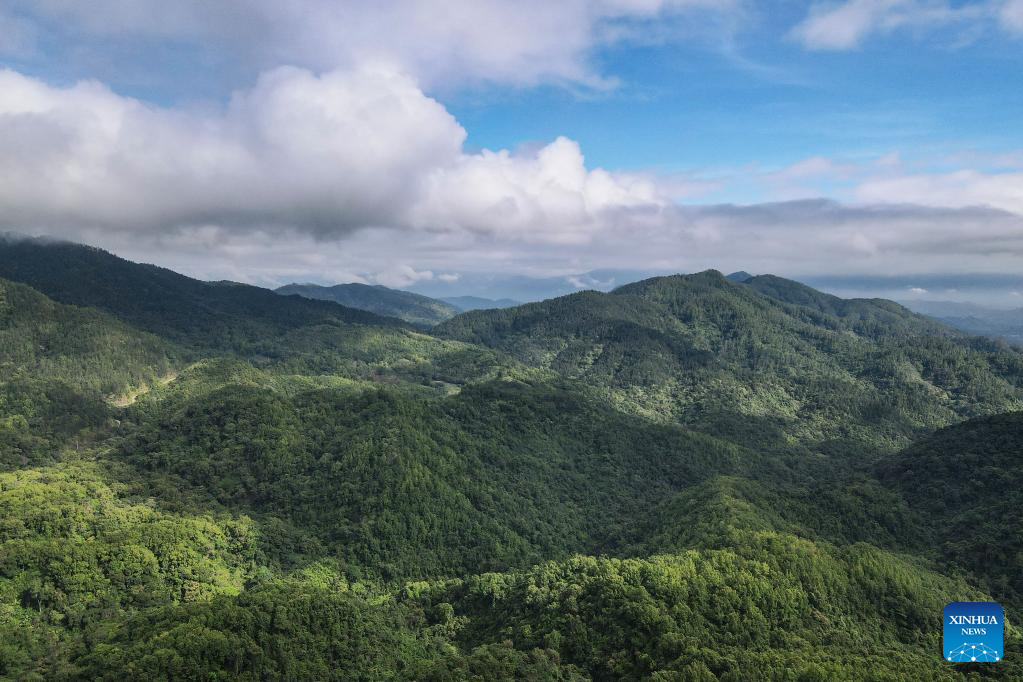 Aerial photo taken on May 19, 2022 shows a view of the Wuzhishan section of the Hainan Tropical Rainforest National Park in Wuzhishan City, south China's Hainan Province. (Xinhua/Zhang Liyun)