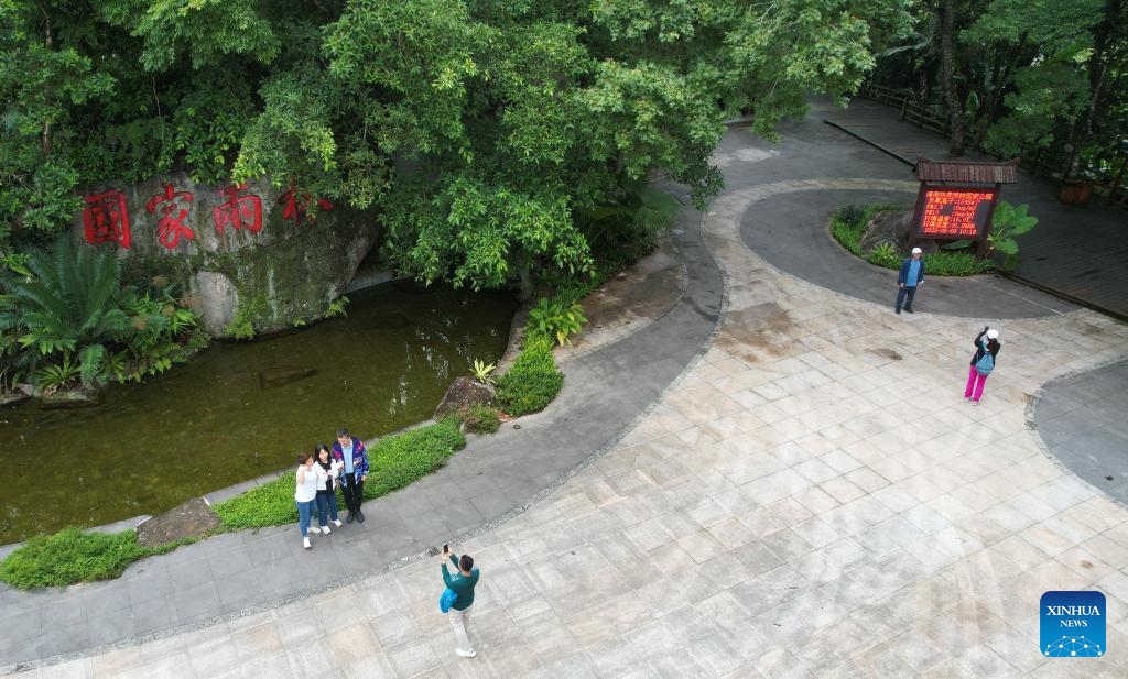 Aerial photo taken on May 3, 2022 shows tourists visiting the Wuzhishan section of the Hainan Tropical Rainforest National Park in Wuzhishan City, south China's Hainan Province. (Xinhua/Yang Guanyu)