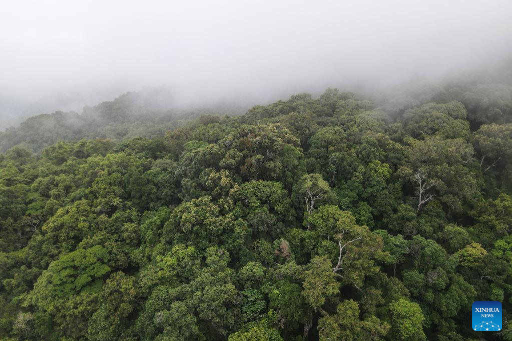 Aerial photo taken on May 17, 2022 shows a view of the Wuzhishan section of the Hainan Tropical Rainforest National Park in Wuzhishan City, south China's Hainan Province. (Xinhua/Zhang Liyun)
