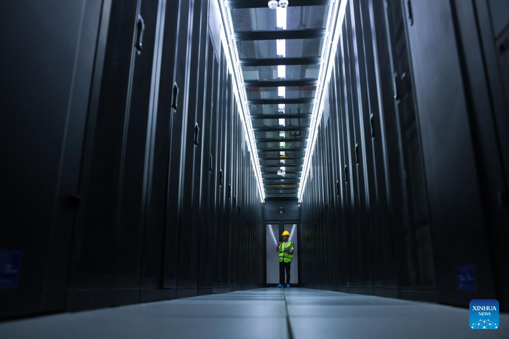 A staff member checks equipment at a data center of China Mobile in southwest China's Guizhou Province, May 24, 2022. As China's first national big data comprehensive pilot zone, Guizhou has been promoting the big-data industry as a backbone of its high-quality social and economic development. The province has attracted heavyweight enterprises and world-famous research institutes seeking to establish big data centers and regional headquarters.