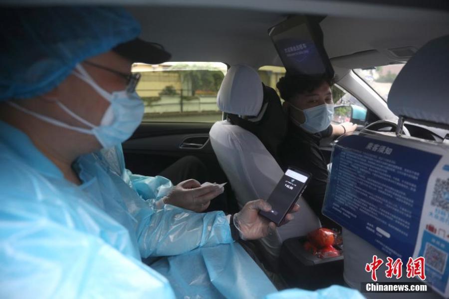Citizens wearing epidemic prevention suits take a taxi in Shanghai, May 24, 2022. (Photo: China News Service/Zhang Hengwei)
