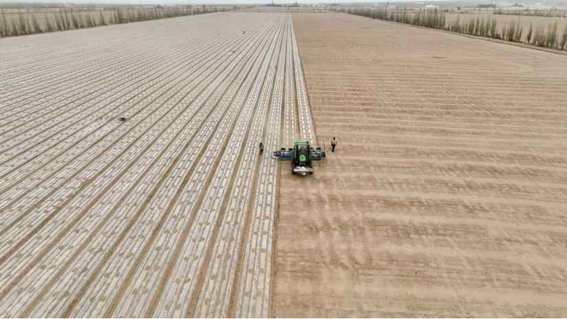 A cotton farmer employs a seeder equipped with the BeiDou Navigation Satellite System (BDS) to sow cotton seeds in Bohu county, Bayingolin Mongolian autonomous prefecture, northwest China’s Xinjiang Uygur autonomous region, April 8, 2022.