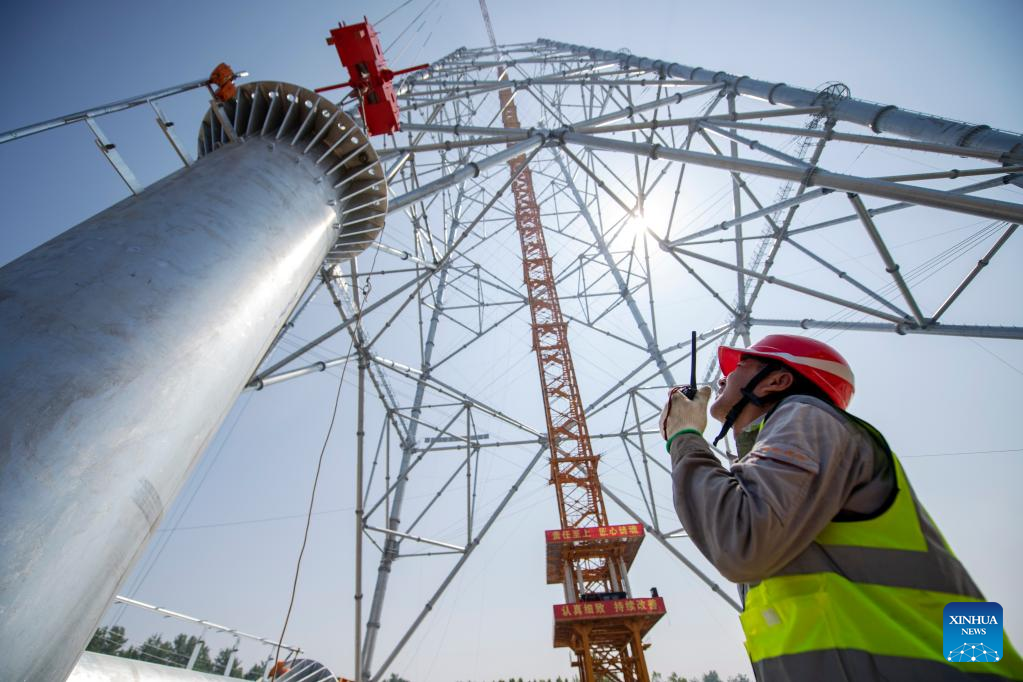 Anhui section of Baihetan-Zhejiang UHV power transmission project under construction