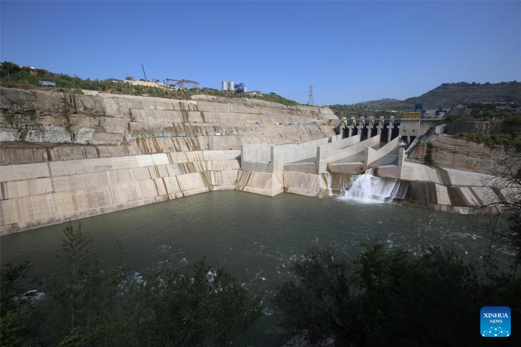 Aerial photo taken on May 24, 2022 shows the dam and spillway of the Karot Hydropower Project in Punjab province, eastern Pakistan. Pakistani Prime Minister Shahbaz Sharif said on Wednesday that the Karot Hydropower Project, a major pilot project under the China-Pakistan Economic Corridor (CPEC), will generate environment-friendly and cheap electricity, promoting green development in Pakistan. (CTG/Handout via Xinhua)