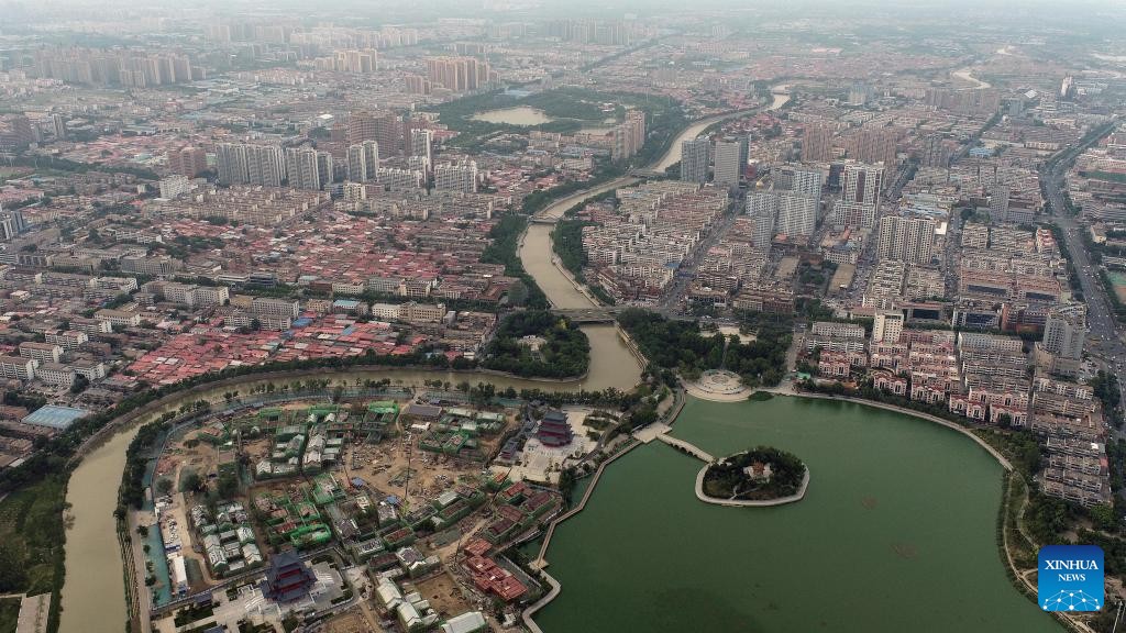 Aerial photo taken on May 24, 2022 shows the scenery along the Grand Canal in Cangzhou City, north China's Hebei Province. (Xinhua/Luo Xuefeng)