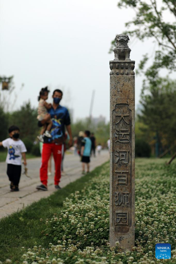 Citizens enjoy the scenery along the Grand Canal in Cangzhou City, north China's Hebei Province, May 24, 2022. (Xinhua/Luo Xuefeng)