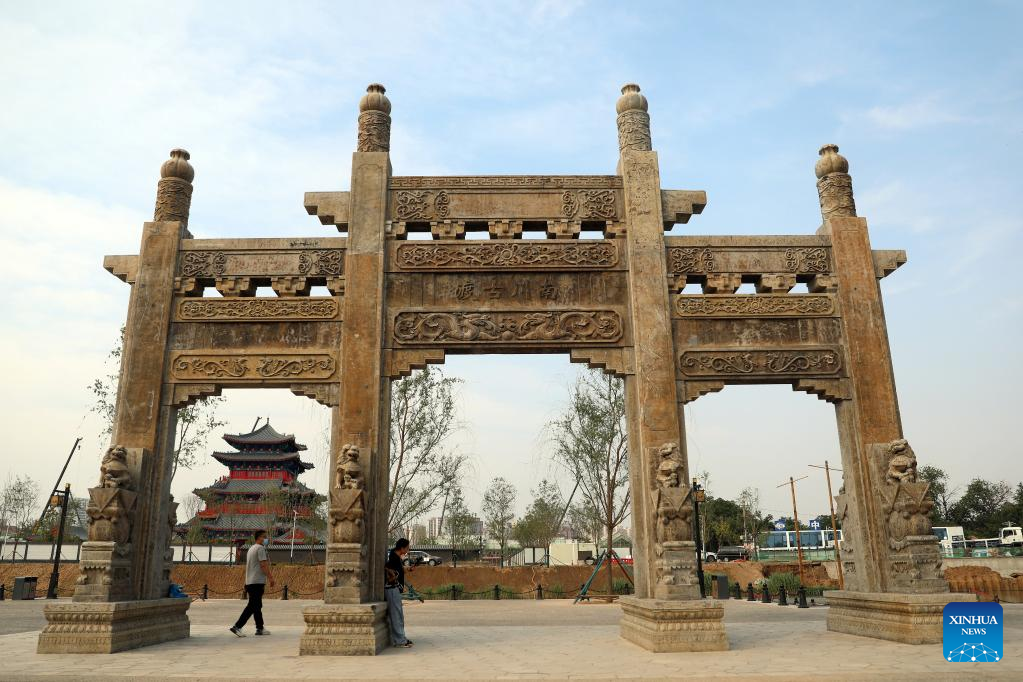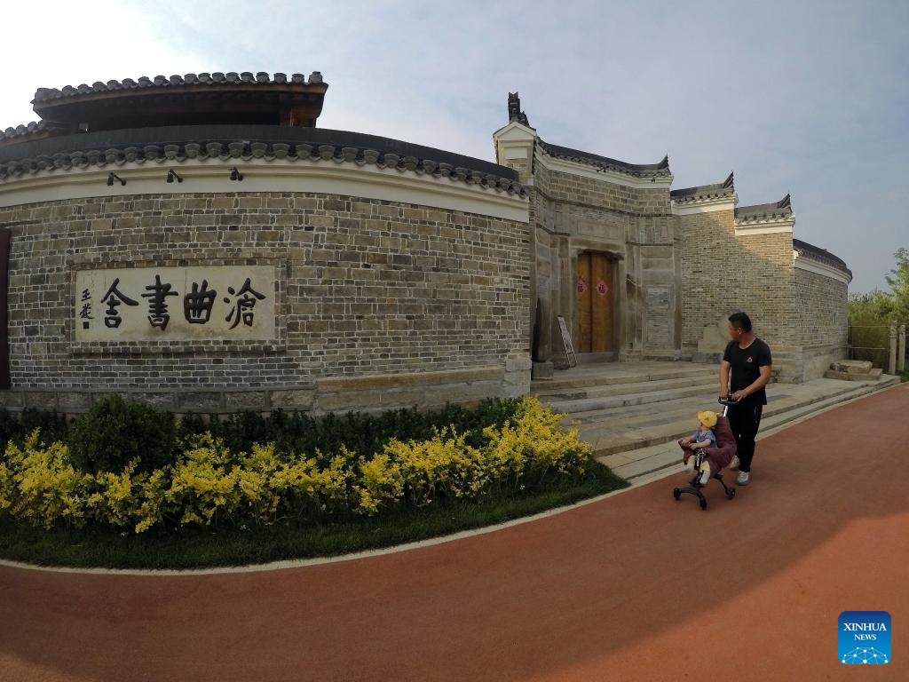 Citizens walk past the yard of an ancient academy along the Grand Canal in Cangzhou City, north China's Hebei Province, May 24, 2022. (Xinhua/Luo Xuefeng)