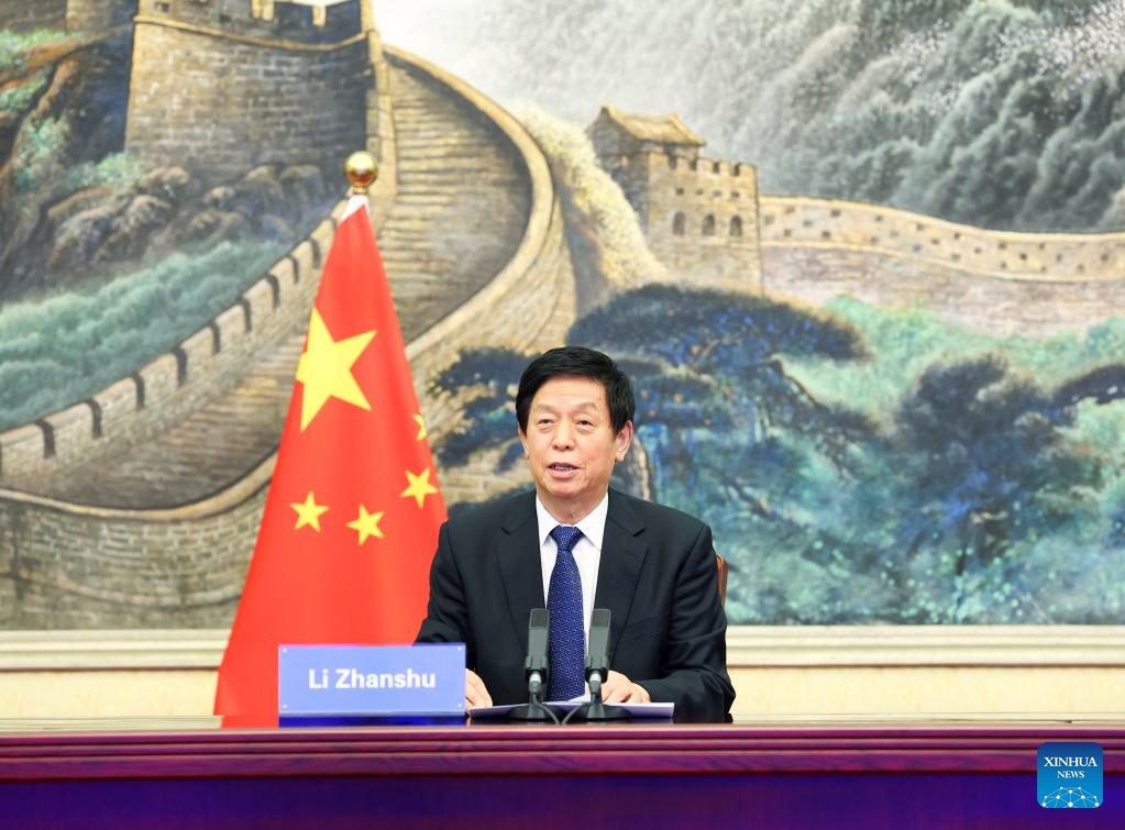BEIJING, May 25 (Xinhua) -- China's top legislator Li Zhanshu on Wednesday held talks with Jordan's Senate President Faisal Fayez via video link.