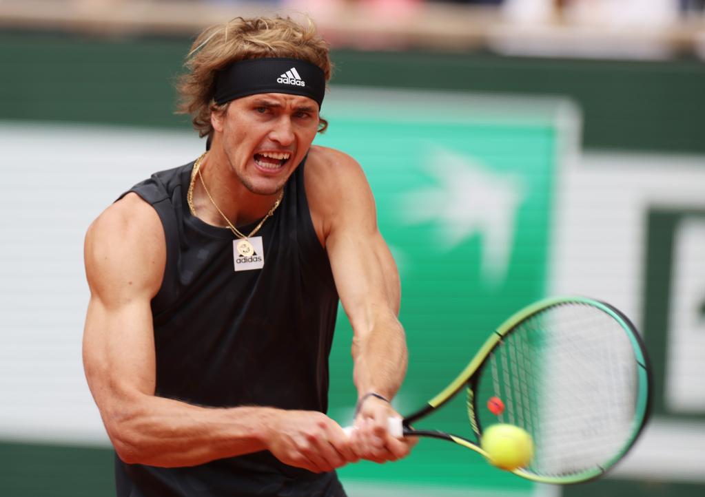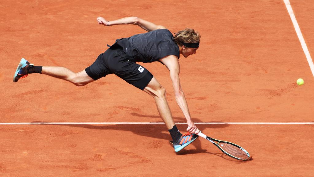 Alexander Zverev of Germany competes during the men's singles second round match between Alexander Zverev of Germany and Sebastian Baez of Argentina at the French Open tennis tournament at Roland Garros in Paris, France, May 25, 2022. (Xinhua/Gao Jing)