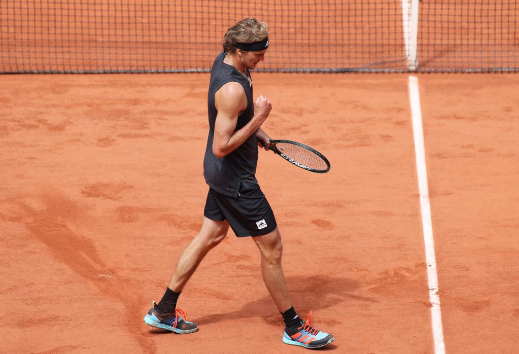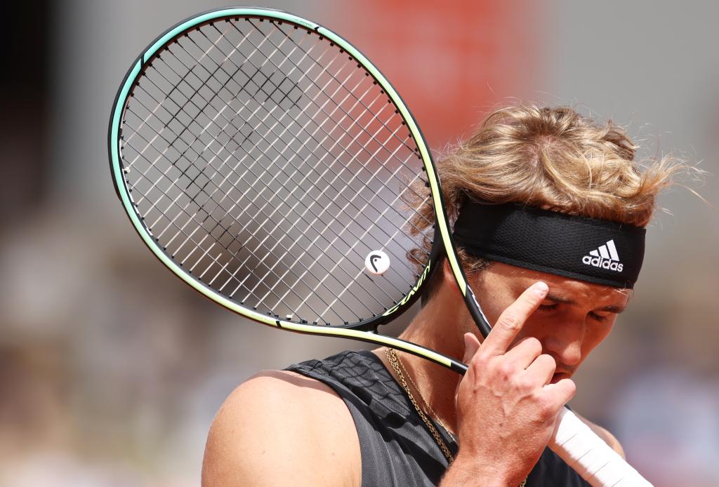 Alexander Zverev of Germany reacts during the men's singles second round match between Alexander Zverev of Germany and Sebastian Baez of Argentina at the French Open tennis tournament at Roland Garros in Paris, France, May 25, 2022. (Xinhua/Gao Jing)